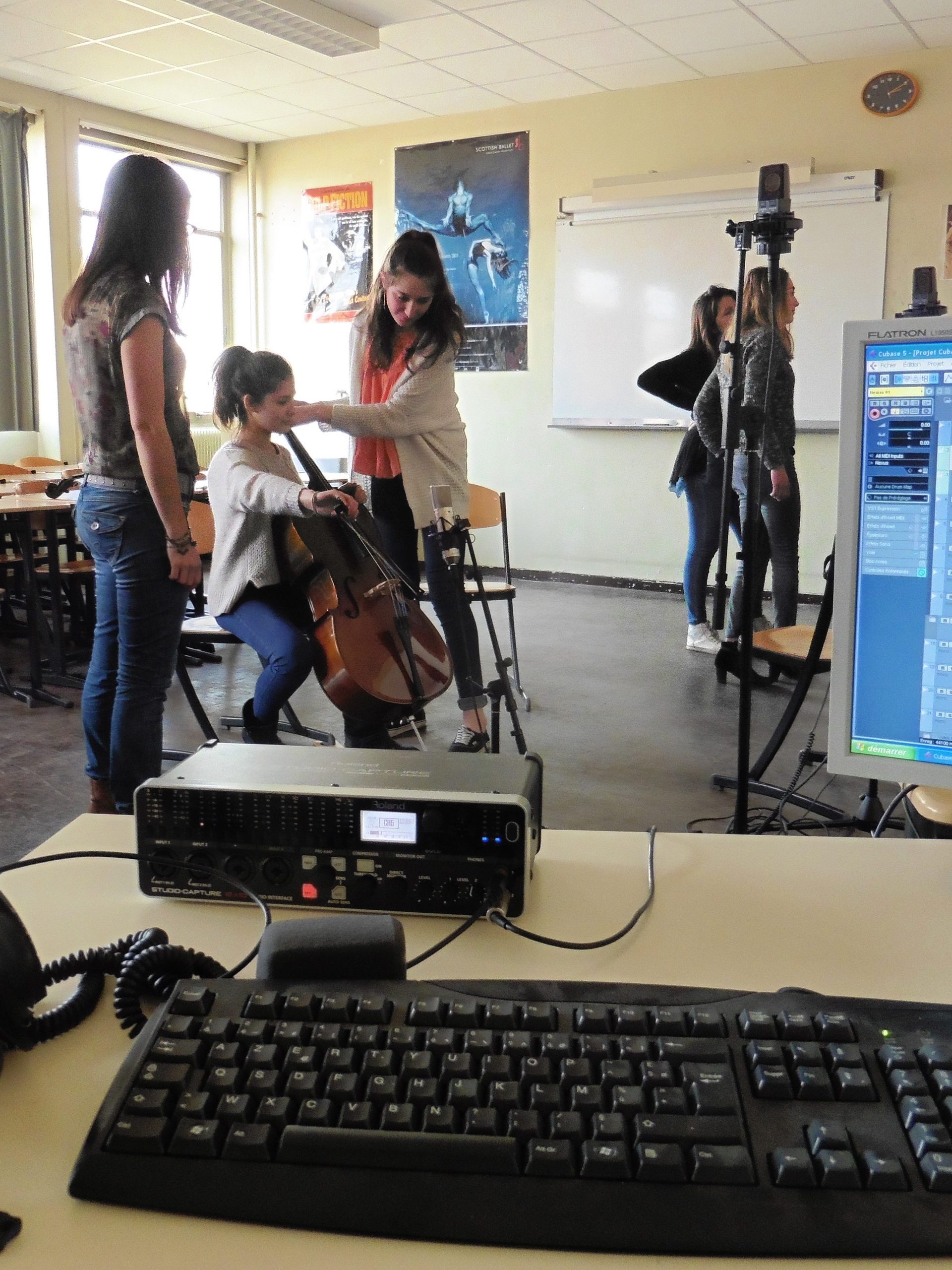 Instruments à disposition : Batterie Pearl, Piano droit, Basse, Guitare électrique, Amplis, guitare acoustique, claviers, drum machine, VST virtuelles …