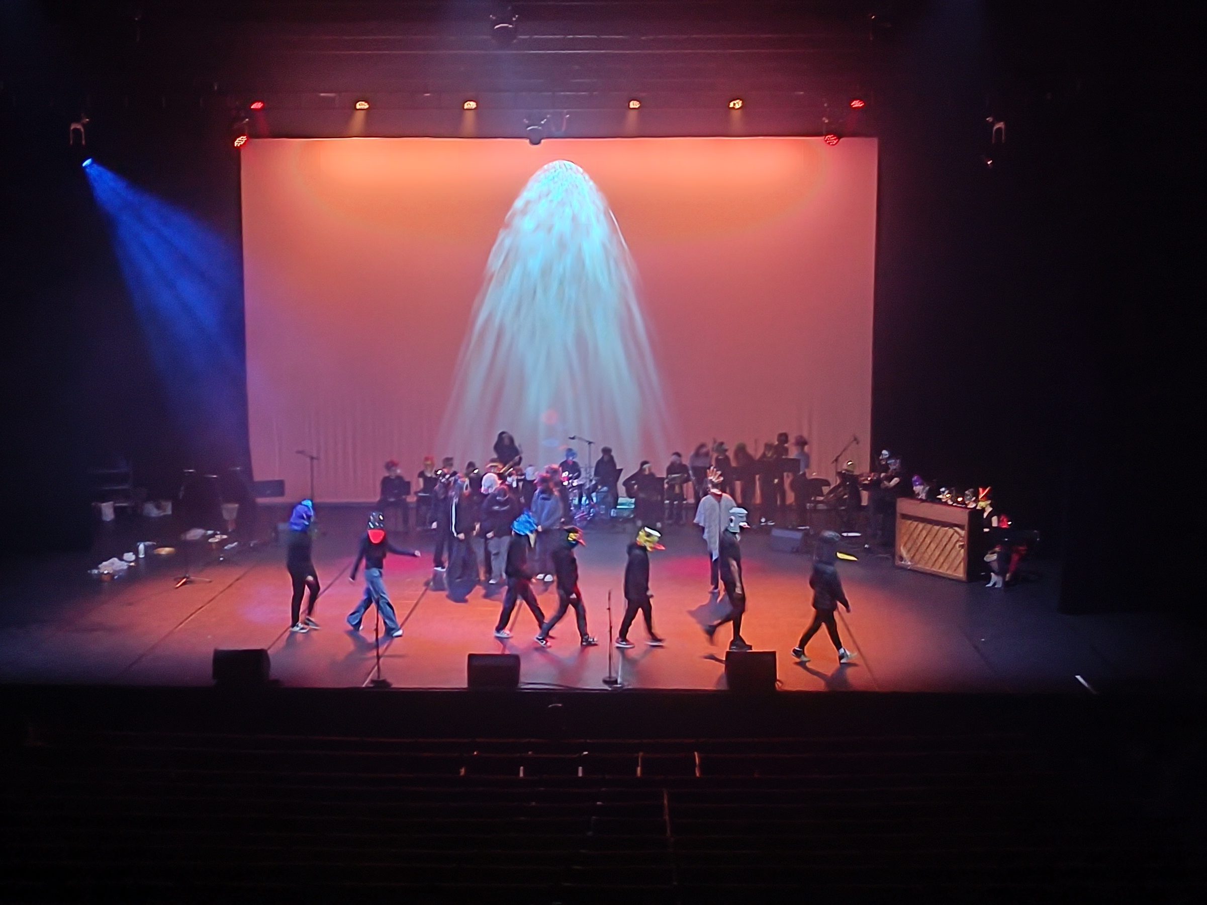 Comme une synthèse de tous mes ateliers, je propose des projets artistiques annuel ou trimestriel pour des groupes plus important (30 à 100 pers). Ce sont des projets d’envergures au seins des quels se mêlent différentes formes de création : musicale & sonore, visuel, scénique.